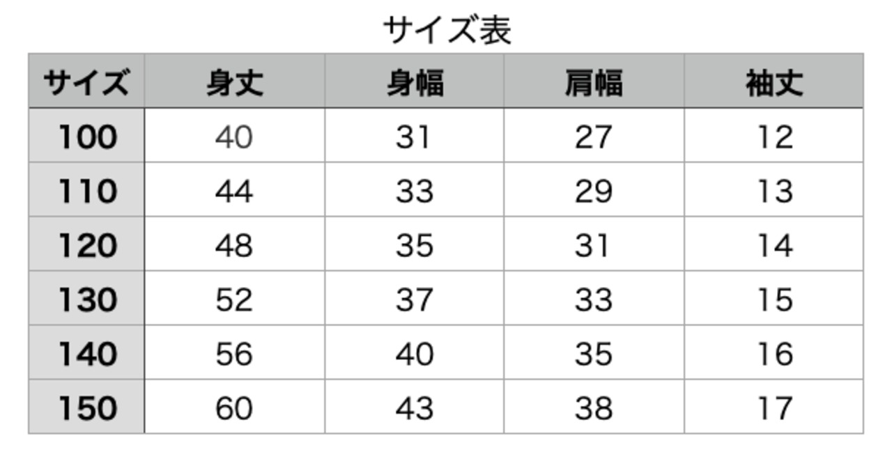 サイズ:100 / 110 / 120 / 130 / 140 / 150